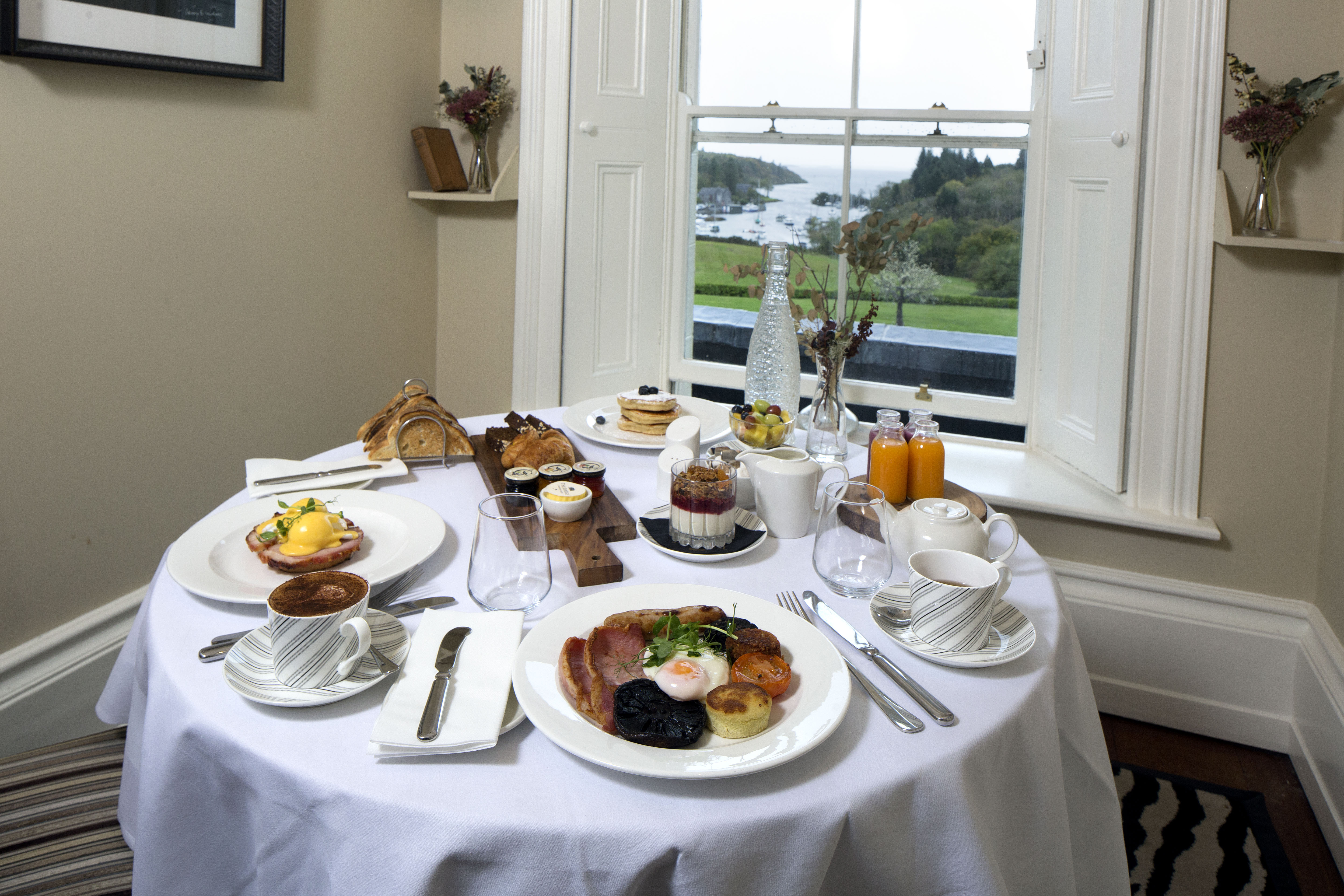 Breakfast is served daily in Wilde’s Restaurant. The beautiful setting affords sweeping views over the waters of Lough Corrib, the perfect backdrop to a tranquil morning breakfast ritual. The kitchen team, led by acclaimed Executive Chef Jonathan Keane, uses local and seasonally-sourced ingredients from producers such as Andarl Farm, Cuinneog Dairy and Brennan’s Honey in Co Mayo, Connemara Fisheries in Co Galway and Milleens cheese in Co Cork. Much of the produce is foraged from the Estate or grown in The Lodge’s own polytunnels.