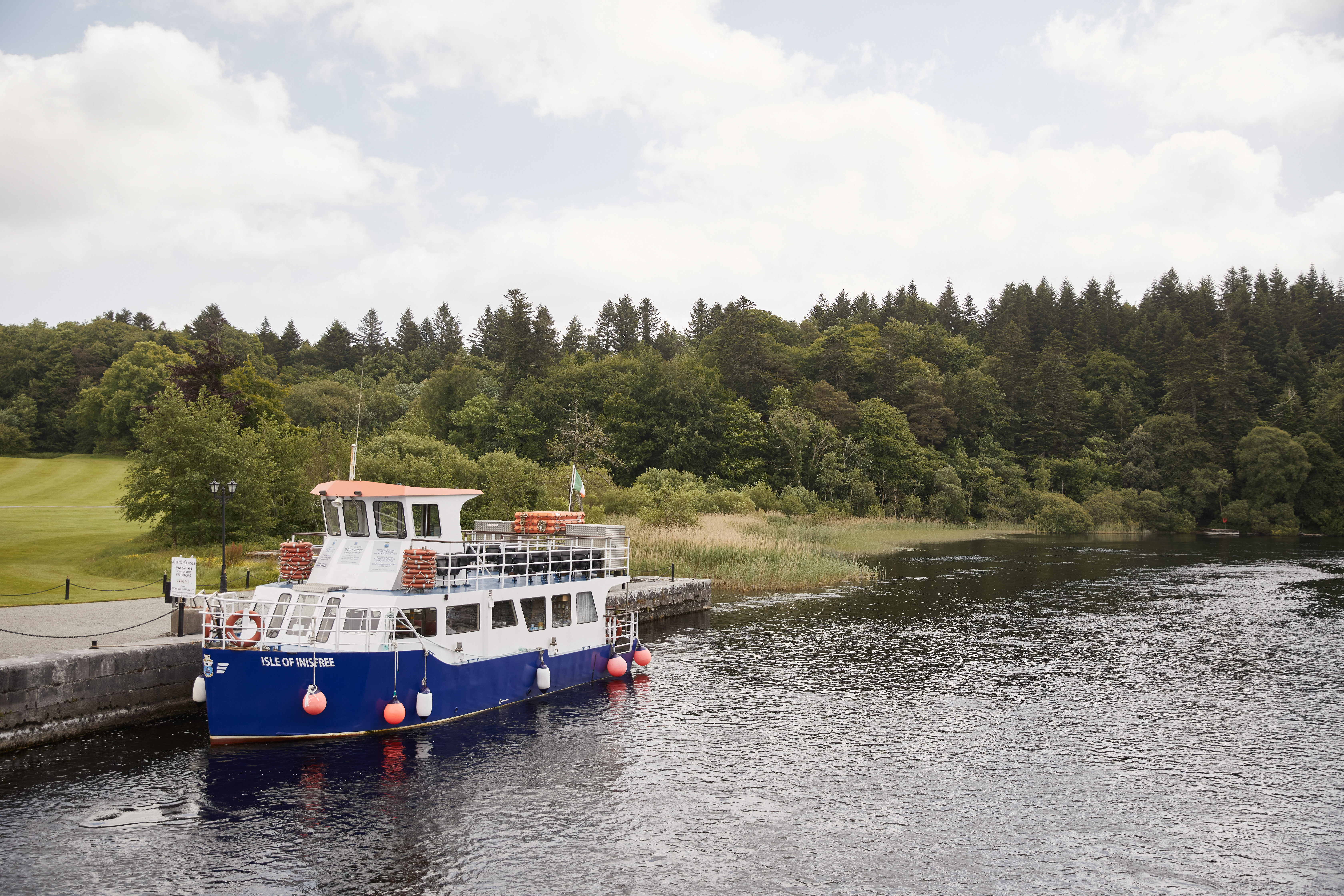 The Isle of Inisfree is an 80 passenger, all-weather craft, licensed by the Irish Department Of Transport. There is a full bar service and toilet facilities onboard. Enjoy the outdoor upper deck and the lower enclosed deck which is centrally heated during the winter months. All cruises depart Ashford Castle Pier, 100 yards from the front door of the castle.